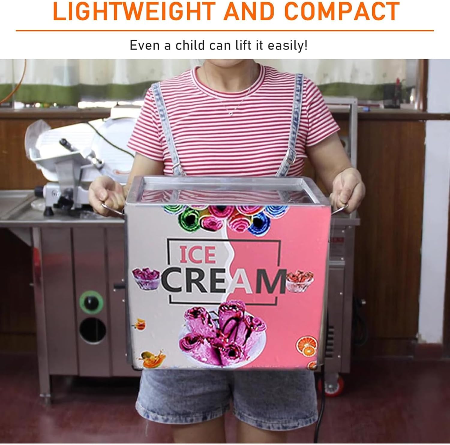 Product name: Small fried ice machine Power: 330W Voltage: 110V/220V Frying pan size: 30*24CM, depth 1.5CM Machine size: 34*28*30(CM) Packaging size: 42*34.5*35(CM) Net weight of machine: 15(KG) Gross weight of machine: 16(KG) Packing list: Fried ice machine*1 (set)
