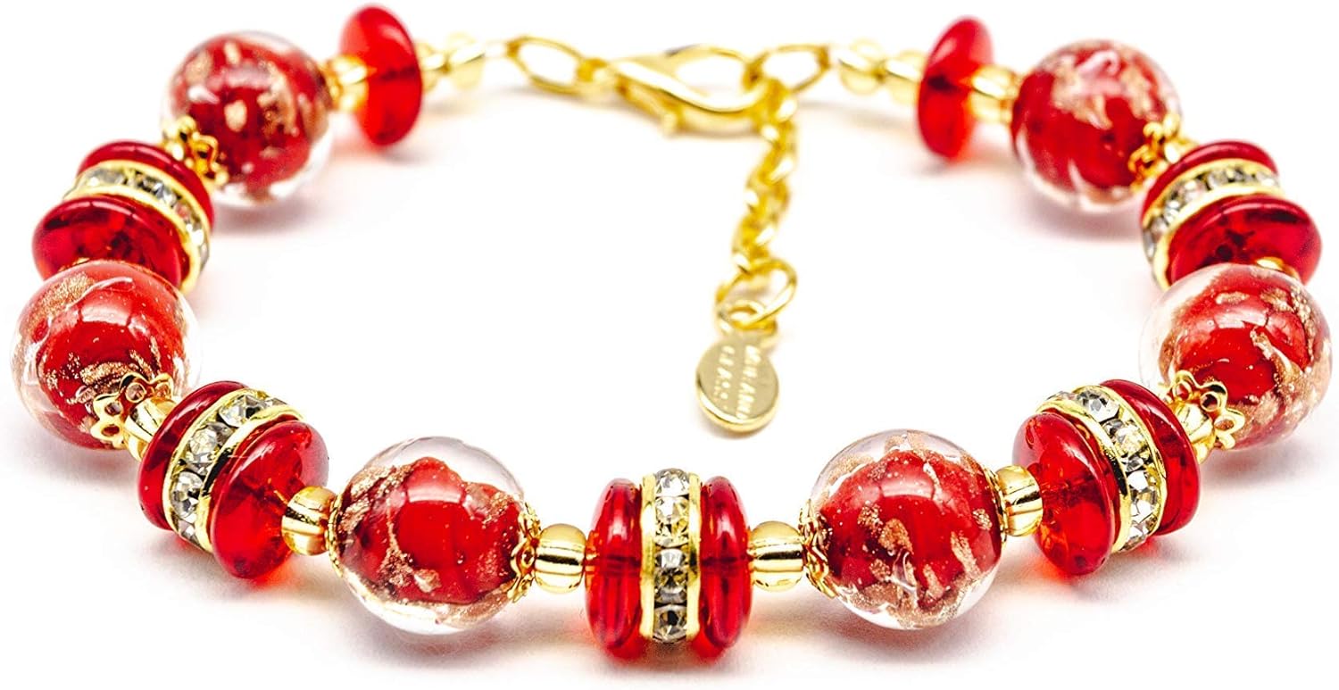Murano Glass Bracelet. High quality, handcrafted by our glass masters in a special design! Enjoy the beauty of authentic Murano Glass The beads are handmade over a torch and subject to slight variations. The process of creating unique items from Murano glass has stayed in a traditional form for many centuries and the secrets of the glassblower profession transmitted from father to son. The name comes from the Murano island in the Venetian lagoon, where all the workshops were transferred by the end of thirteenth century. Our collection includes some of the finest examples of Murano glass jewelry, handmade in Venice by expert artisans. This is a unique accessory that will brighten up your look and your day. ✔️ The product is well packed for shipping and safe for damages. ✔️ Size of the beads is 12mm ✔️ Bracelet measures approximately 7 3/4 inches in length or 20cm ✔️ From Venice with love!
