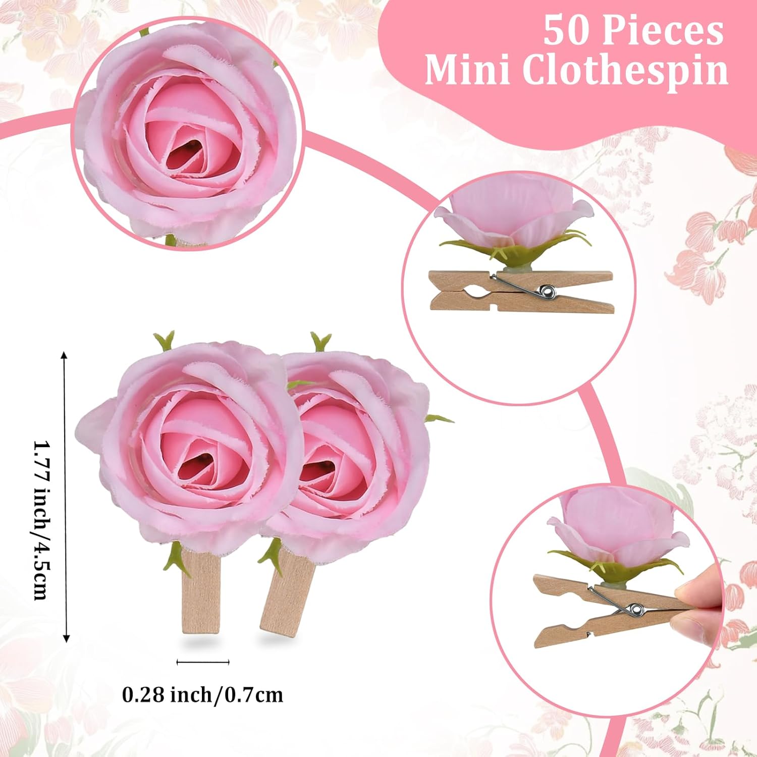Flower Don't Say Baby Baby Shower Game, 51Pcs Floral Clothes Pins Game for Baby Shower, 1 Sign and 50 Rose Wooden Clothespins, Gender Reveal Party Favors Decorations
