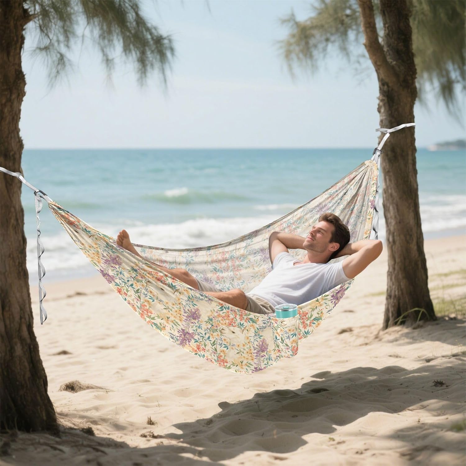 Spacious Size: This single Tree Hammock measures 114 × 54.33 in, providing ample space for users to rest comfortably. It can bear a load of 330LB/150KG.High Load-bearing Capacity: Rope Hammocks for Outside fabric is made of high-strength and breathable 210T polyester. Climbing buckle is made of aluminum alloy. Sturdy, the tree belt is made of high-density 600D imitation nylon webbing, which has excellent wear resistance, tear resistance, and strong load-bearing capacity.Design: This edge of Portable Hammock is equipped with hanging pockets, which can be used to store personal items. Hammock is relatively light in overall weight. A single hammock usually weighs 490g and can be folded for storage. When folded, it is compact in size and easy to carry.Applicable Scenarios: Hammock for Tree is suitable for various outdoor activities, such as camping, traveling, hiking, etc.Warm Reminder: When cleaning this Swing Hammock, remember to remove the climbing at both ends.
