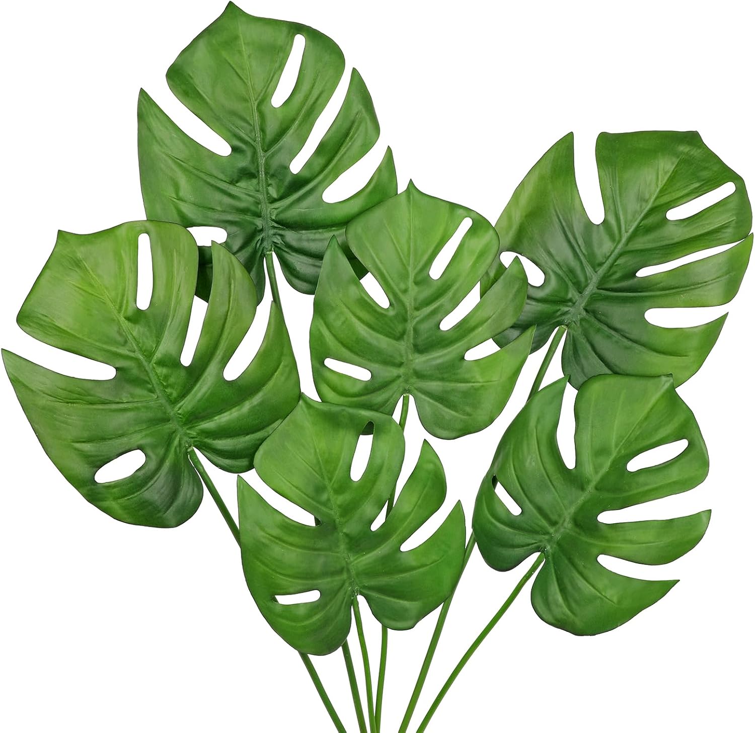 Hollyone 6 Pack Artificial Anthurium Leaves with Stems Real Touch Faux Anthurium Safari Leaf Fake Palm Tropical Plants for Vase Hawaiian Luau Party Jungle Beach Table Home Wedding Kitchen Decor