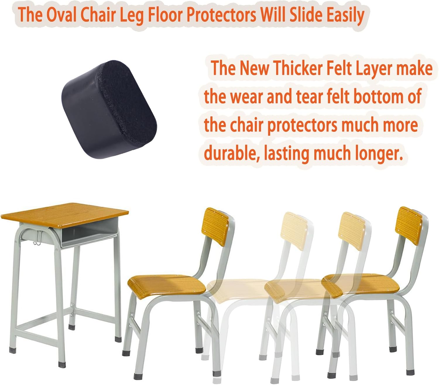 • [The Oval Chair Leg Floor Protectors ] they are felt and will slide easily, do the job. Not need lift stool and replace.The New Thicker Felt Layer make the wear and tear felt bottom of the chair protectors much more durable, lasting much longer.