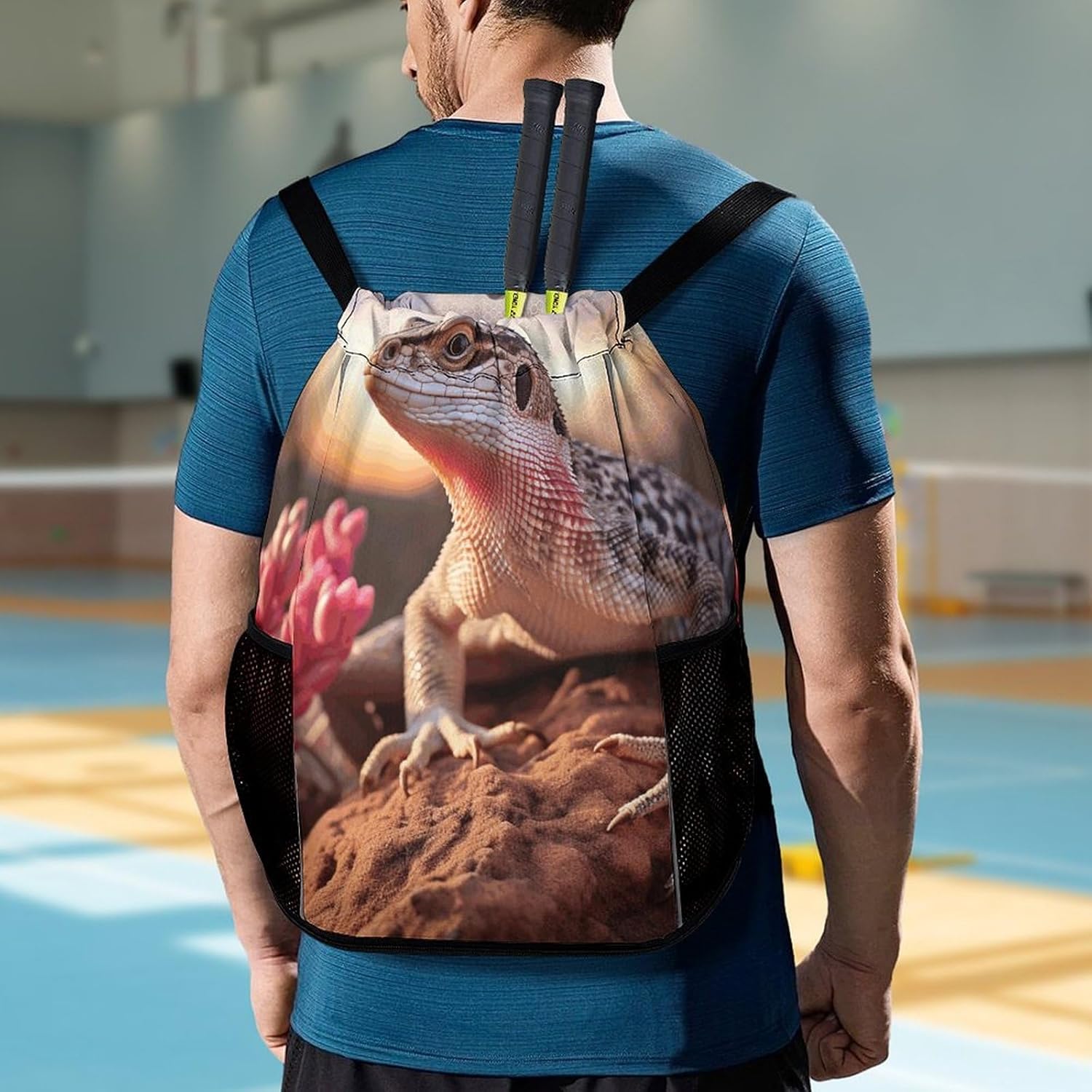 Our premium drawstring bag is the ideal companion for your active lifestyle. Made of premium honeycomb fabric, this pocket is not only durable but also has a comfortable textureA major feature of this White Lizard drawstring gym bag is the wet/dry separation design. Whether you are coming back from a sweaty workout or traveling in the rain, you can easily separate wet clothes or shoes from dry essentials such as electronics, documents or cosmetics. This innovative design keeps your items neatly organized and protectedWith a large zipper opening, it is very simple to access items. The zipper design conforms to the usage habits of most people and can be opened and closed smoothly and easily. You can easily and quickly get what you needThe sturdy structure of this sports bag is another feature. The edges of the shoulder straps are carefully processed, which makes it more resistant to heavy objects than ordinary bags. This ensures that it can accompany you in all sports and adventures without worrying about damageOur Sports Drawstring Backpack pocket also has a large capacity. It can hold a variety of items, from clothes and shoes to iPads, books, keys, ID cards, cosmetics and wallets. It is suitable for various occasions, such as traveling, going to work, fitness, etc. No matter where you go, this pocket can meet your storage needs